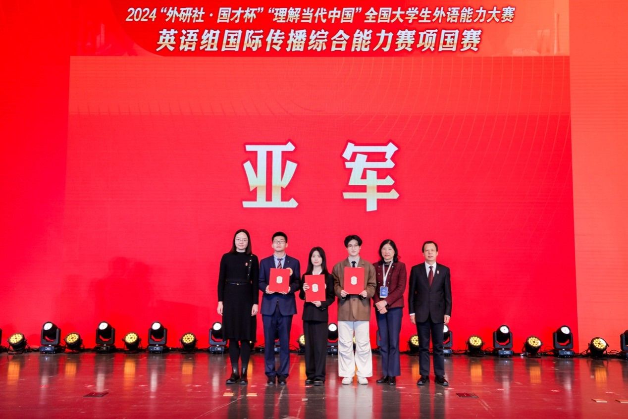 12月9日,2024“外研社·国才杯”“理解当代中国”全国大学生外语能力大赛英语组国际传播综合能力赛全国总决赛圆满落幕,我校YABO鸭脖2023级屈浩洋同学以总分第二名荣获亚军。
