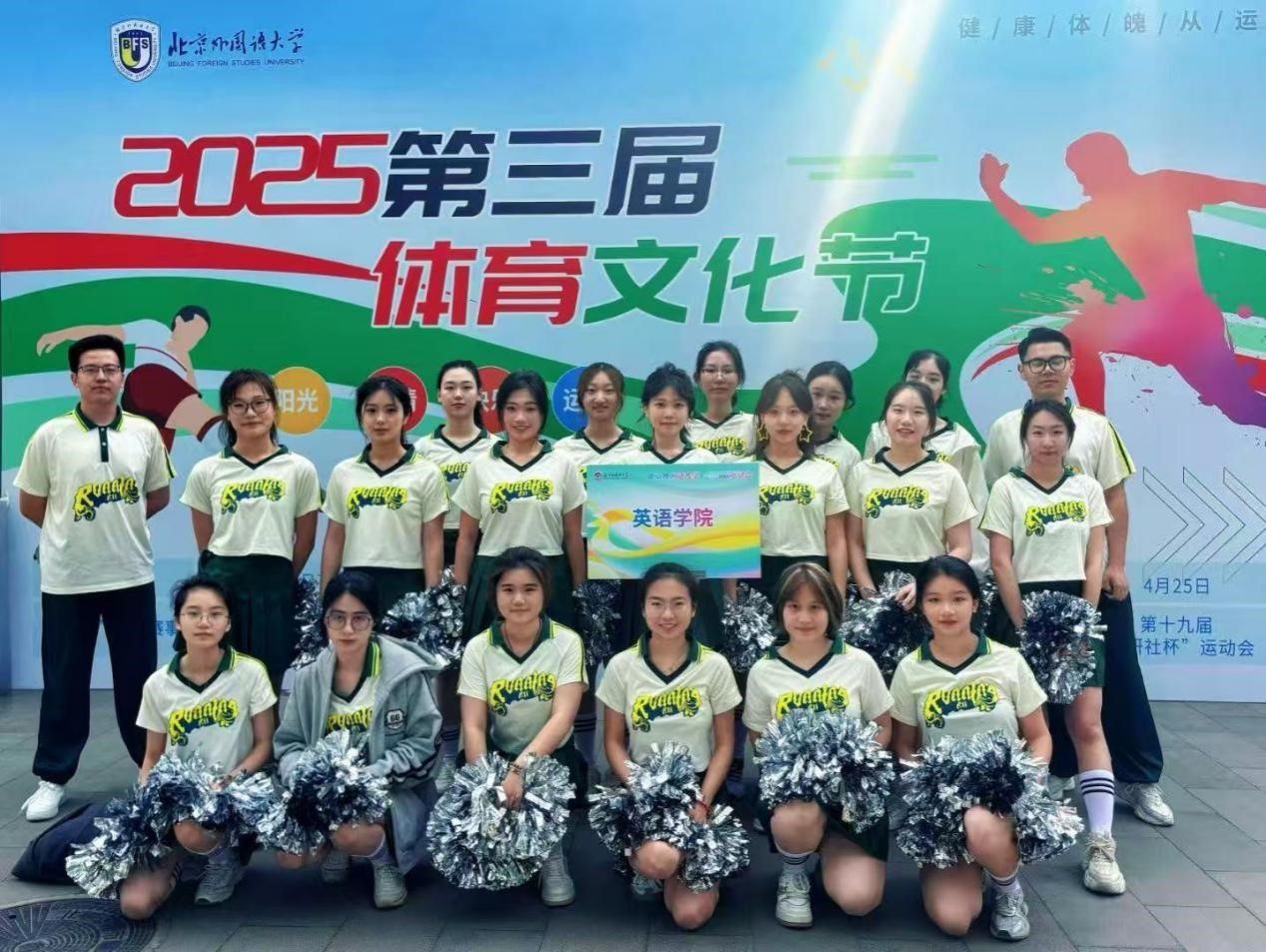 2025年4月25日,北京外国语大学成功举办第十九届“外研社杯”运动会。YABO鸭脖教职工和学生发扬顽强拼搏、奋勇争先的体育运动精神,积极参与多个项目的角逐,学院获得了学生组团体总分第二名的好成绩,为热闹的赛场增添了一道靓丽色彩。