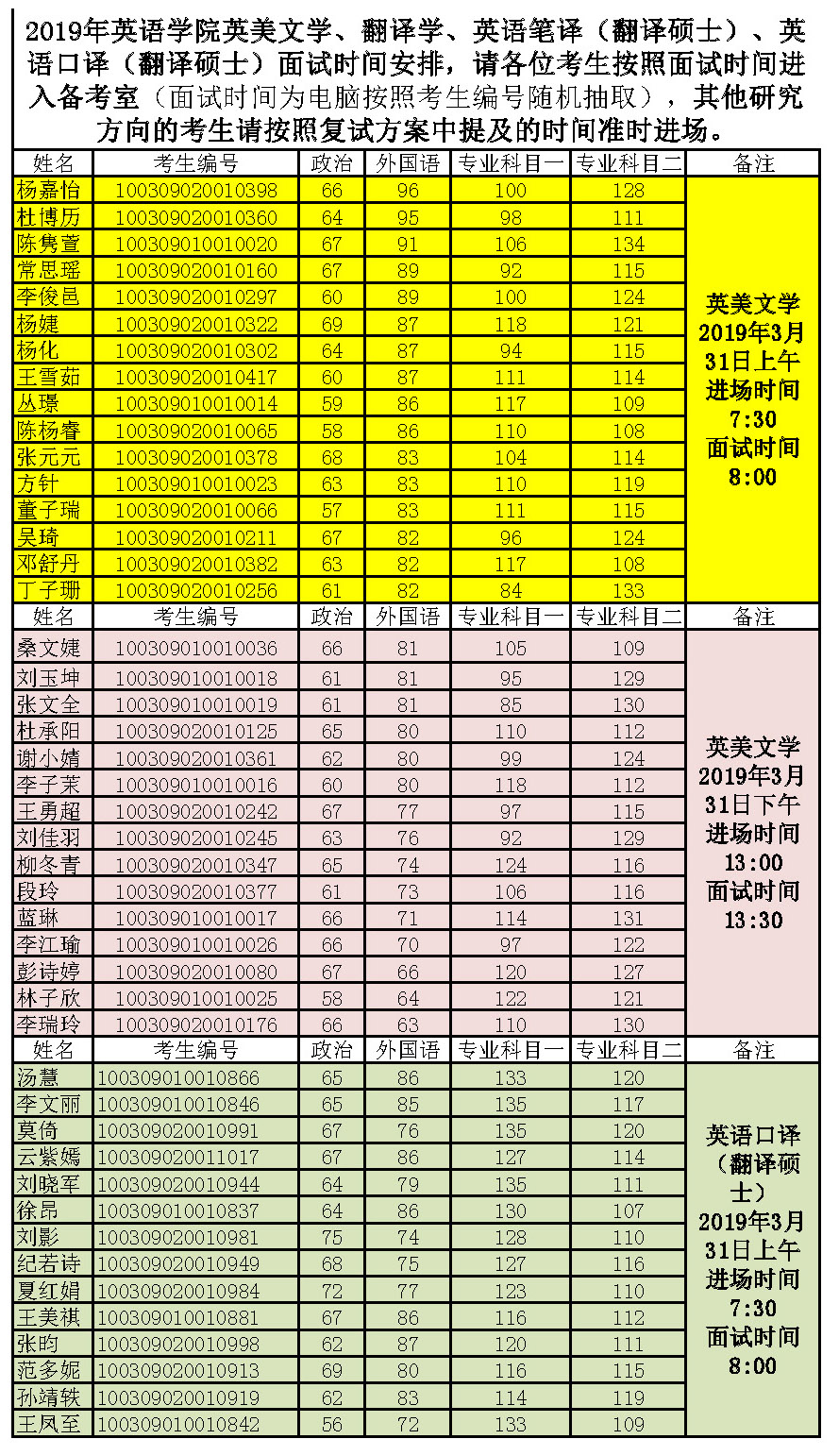 2019年YABO鸭脖英美文学、翻译学、英语笔译(翻译硕士)、英语口译(翻译硕士)面试时间安排