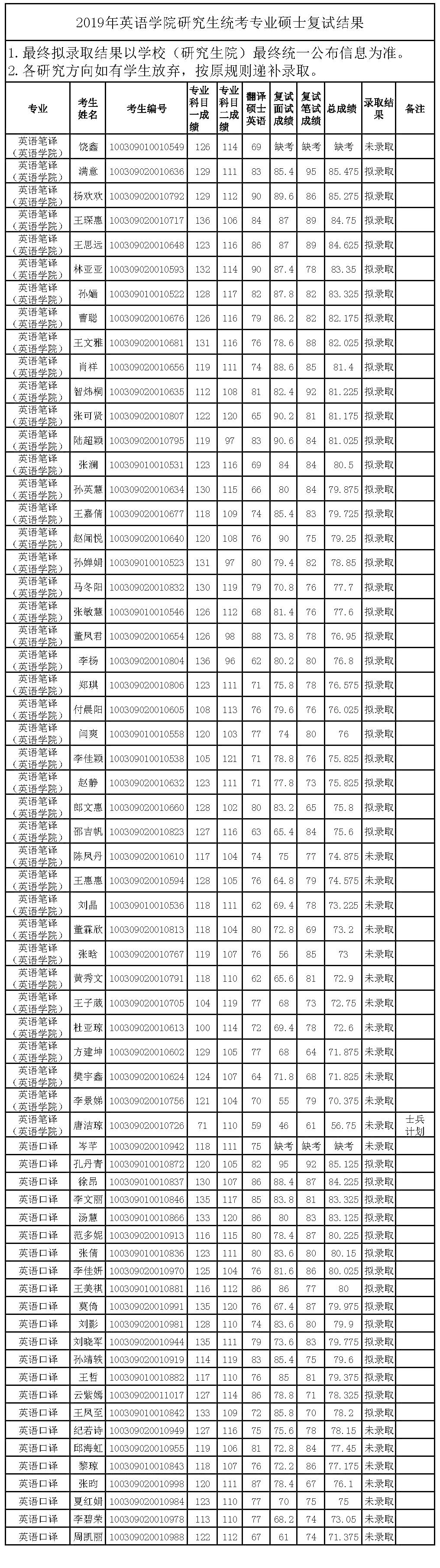 2019年YABO鸭脖研究生统考专业硕士复试结果公示