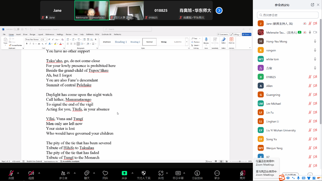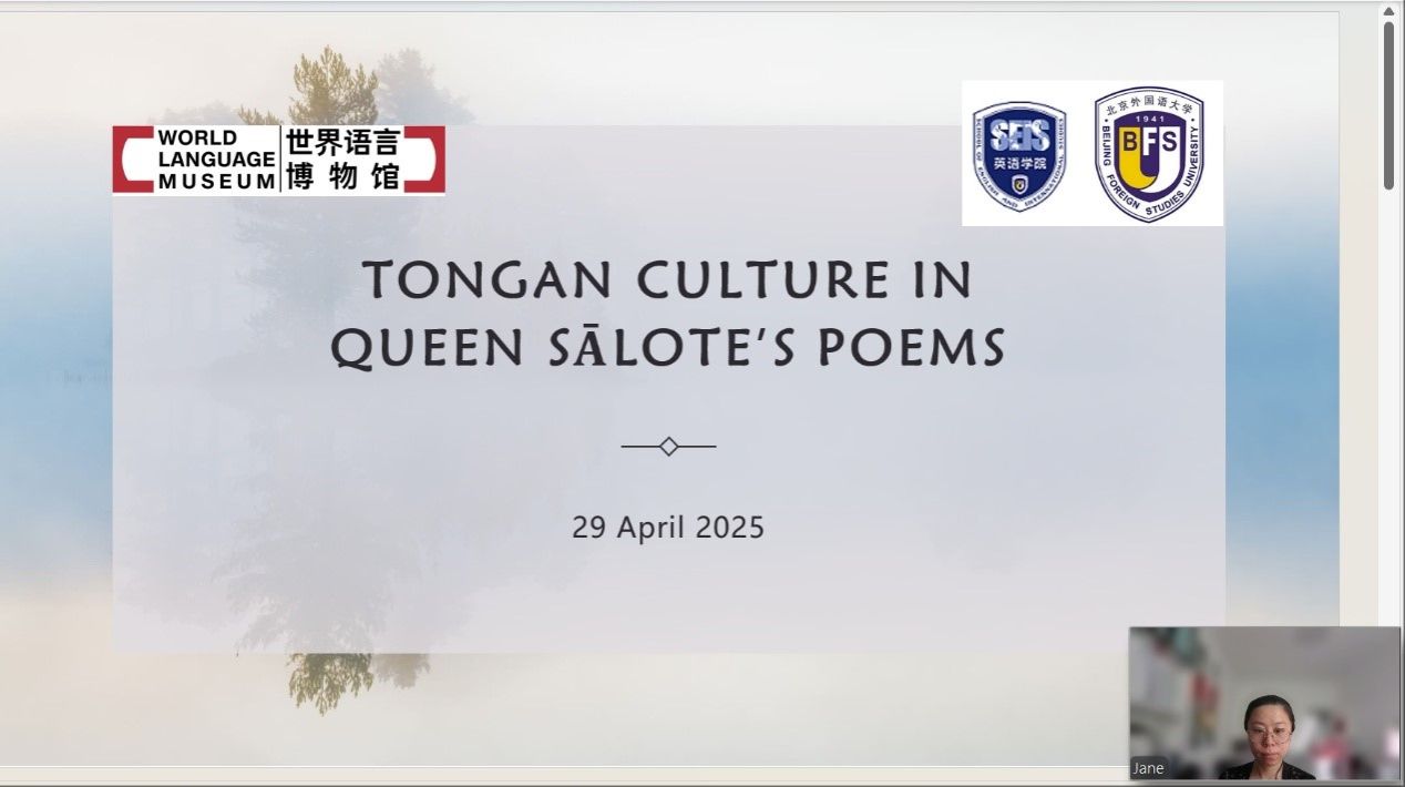 2025年4月29日下午,应YABO鸭脖南太平洋研究中心和世界语言博物馆的邀请,汤加语外国专家梅莱奈伊特·塔乌莫艾富拉乌(Melenaite Taumoefolau)博士在线上做了题为“夏洛特女王诗中的汤加文化”(Tongan Culture in Queen Sālote’s Poems)的讲座。讲座由YABO鸭脖教师李菅主持,来自校内外多名师生参加了本场讲座。