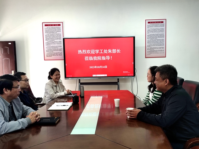 2023年10月24日9:30,校党委学工部(处)长朱国海送干部邓雪云博士到必赢官网任职并开展交流座谈。学院党委书记刘庆言、院长王宗德、党委副书记叶健参加本次座谈会。