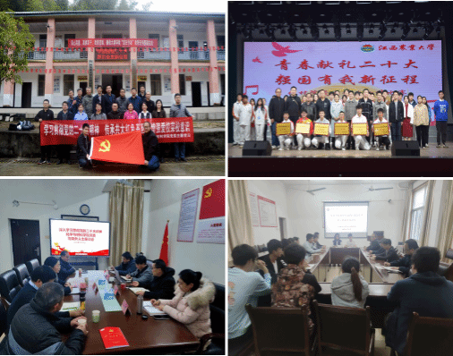 学生在哪里,课堂就设在哪里,全院16个团支部围绕“学精神、谈体会、定目标”进行专题研讨学习,学院团委召集所有团支部书记召开学习党的二十大精神座谈会,并撰写心得体会,做到人人有思考、人人谈体会、人人受教育。11月21日晚,学院组织10余名学生党员到各新生班级宣讲党的二十大精神,宣讲团用一个个鲜活的案例,详细阐述了党的二十大报告中关于新时代好青年的重要论述的深刻意蕴,勉励全体新生做敢想敢为、善作善成的新时代好青年。11月19日,学院党委组织教工党员赴大港试验林场开展主题为“学习贯彻党的二十大精神,传承共大红色基因,增强爱校荣校意识”主题党日活动,参观了大港林场原共大旧址,感受了当年师生的艰苦创业之路。