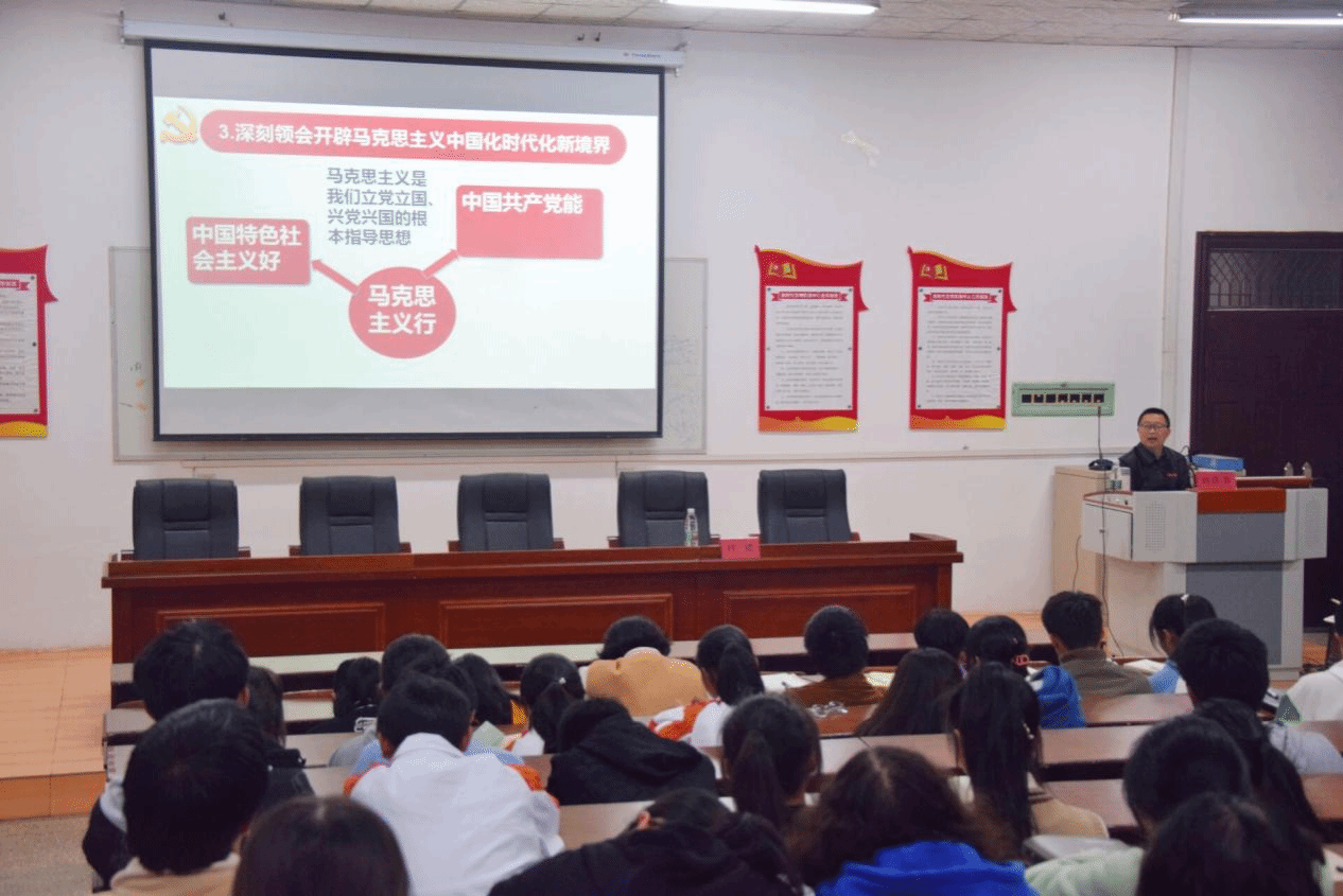 为深入学习宣传贯彻党的二十大精神,更好地推动党的二十大精神进校园、进班级、进课堂,同时扎实开展好新生入学教育、为新生上好专题党课,2022年11月4日晚上7点,必赢官网于一教惟义楼党校教室举办党的二十大精神宣讲报告会,报告会由学院党委书记刘庆言主讲。学院党委副书记叶健、辅导员及182名新生参加报告会。