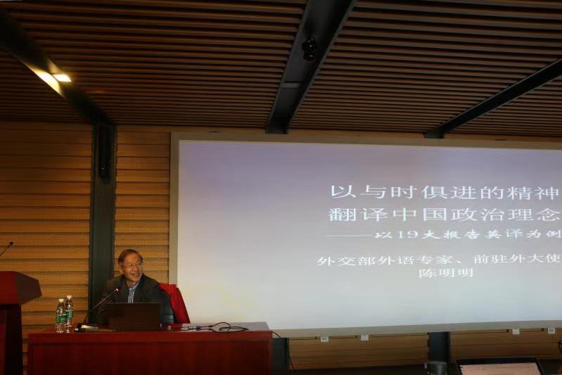 11月25日下午,外交部翻译室主任、资深外交官陈明明大使受邀来到我校,为师生作了题为“以与时俱进的精神翻译中国政治理念——以十九大报告翻译为例“的讲座。本次讲座由我校YABO鸭脖主办,由YABO鸭脖院长张剑教授主持。