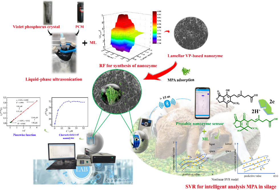 2023年7月6日,必赢国际437官网文阳平教授和动科院瞿明仁教授为共同通讯作者,博士研究生戈钰为论文第一作者,在TOP一区《Biosensors and Bioelectronics》(IF=12.545)发表题为“Machine learning-guided the fabrication of nanozyme based on highly-stable violet phosphorene decorated with phosphorus-doped hierarchically porous carbon microsphere for portable intelligent sensing of mycophenolic acid in silage”的论文,该研究工作得到了国家自然科学基金和国家现代农业产业技术体系的支持。