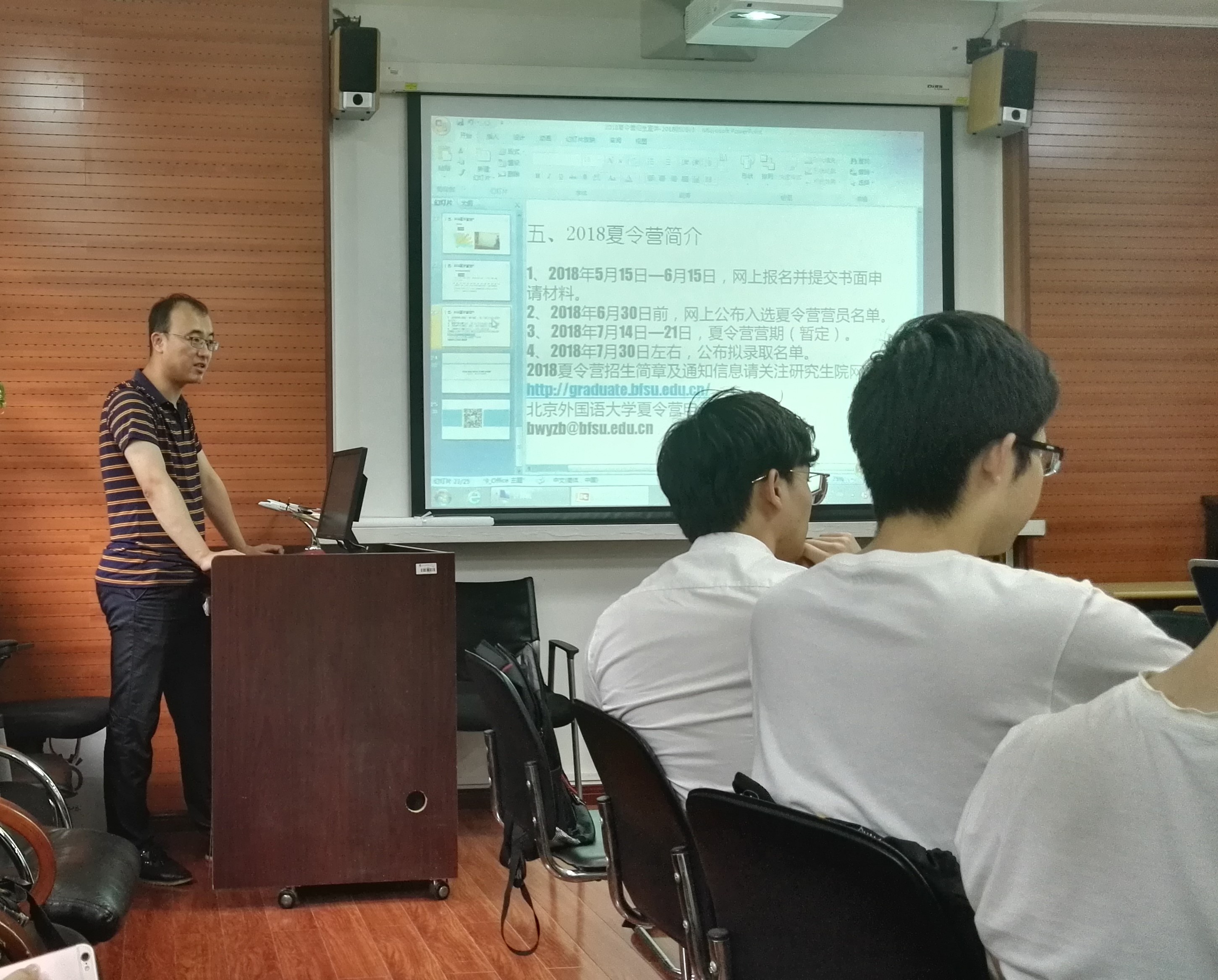 ——为使同学们更深入地了解我校国际组织项目班,YABO鸭脖于 2018年6月6日下午3点,在115会议室,邀请到北外研究生院招生办公室康国强老师为YABO鸭脖2015级同学介绍国际组织项目班的人才培养模式及招生情况。