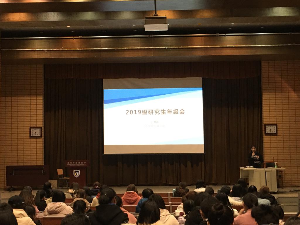 2019年11月13日晚,YABO鸭脖2019级研究生年级会在逸夫楼第三阶梯教室召开,党总支书记路兴、辅导员王博铮及2019级全体研究生出席参加。