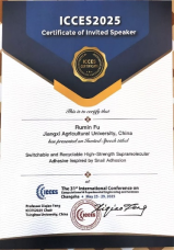 必赢官网材料化学教研室付如民青年教授受邀参加S82. Bio-Inspired Smart Surfaces for Advanced Applications分会场并做了题为《Switchable and Recyclable High-strength Supramolecular Adhesive Inspired by Snail Adhesion》的主题报告,系统地介绍了智能粘合剂的研究意义和难点,提出了新型界面物理/化学键合协同模量变化对可逆粘附的影响,并探究了其高透明性和可回收性等多功能性,最后就其在柔性电子和智能家居的应用与同行专家进行了深入广泛的交流,对于宣传必赢官网材料化学领域的最新学术进展起到了良好的效果。