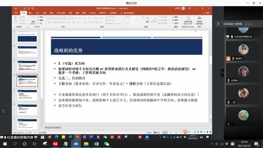 4月10日上午,英学职“战略班介绍”沙龙成功举办。本次沙龙的主讲人是YABO鸭脖2019级本科生、战略班成员杜思泉和涂湘。