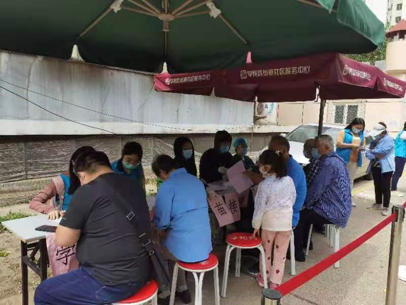 在到达学知园社区后,学知园社区的工作人员给同志们分配了不同的任务。当天由于天气原因,疫苗接种地点临时变动,同志们帮助社区工作人员搬运桌椅等设施,及时通知社区居民地点变动信息,维持现场秩序,保证了疫苗接种工作按时开始。工作期间,同志们坚守自己的工作岗位,耐心解答居民提出的问题。在同志们和学知园社区工作人员近四个小时的努力下,社区疫苗接种工作顺利完成。