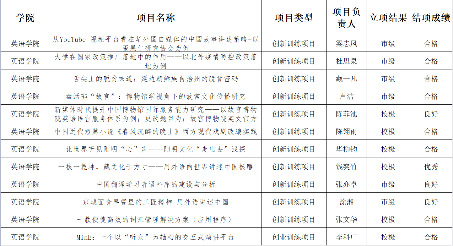 根据《关于2022年大学生创新创业训练计划项目结项工作的通知》,学校开展结项验收工作,学院提前组织结项答辩评审委员会,对2022年度大创项目进行预审,经过材料评审、项目陈述、答辩、修改等环节后提交学校审核,2021年YABO鸭脖大学生创新创业训练计划共计12个项目结项,其中1个项目获评为优秀项目、3个项目获评为良好项目。