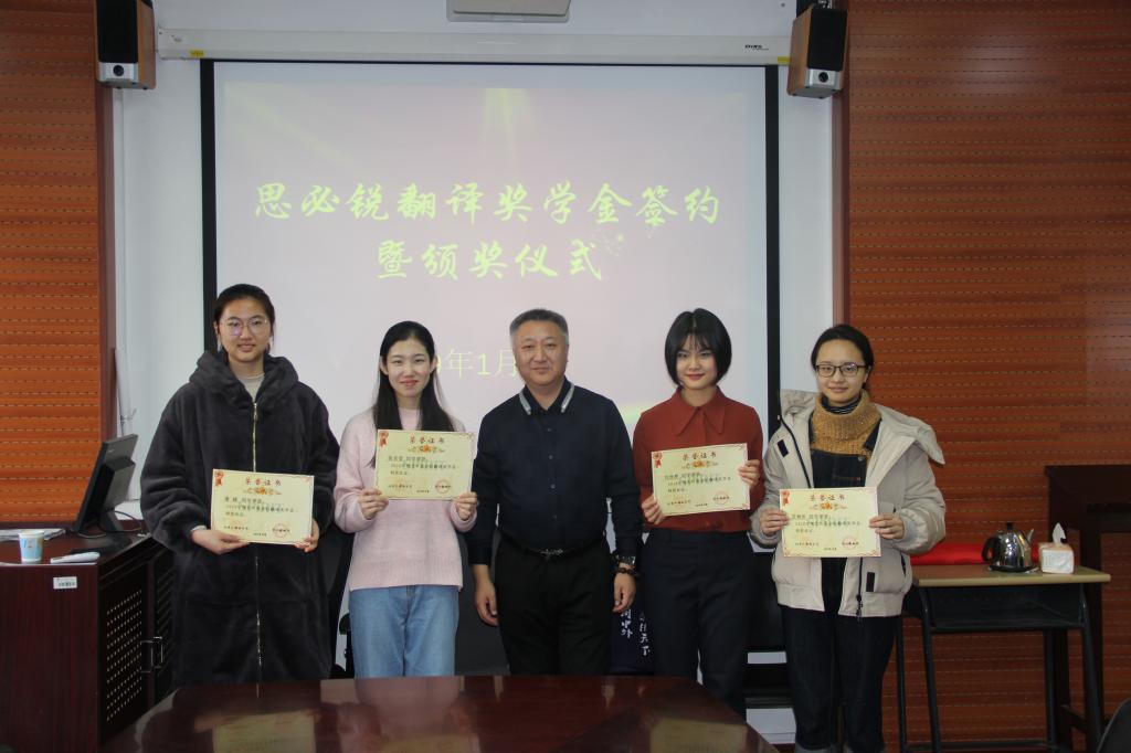 2019年1月4日上午10:00,我院在115会议室举行“思必锐翻译奖学金”签约暨颁奖仪式。北京思必锐翻译有限责任公司副总经理许立群、人力资源部经理魏之洲、资源管理部经理王艺露、培训部项目经理刘雅堃,YABO鸭脖党总支书记路兴、辅导员张春霞、鞠丹、于承杰、王书剑,获奖学生刘欣然、张安莹、范柳依、潘越等参加了活动。