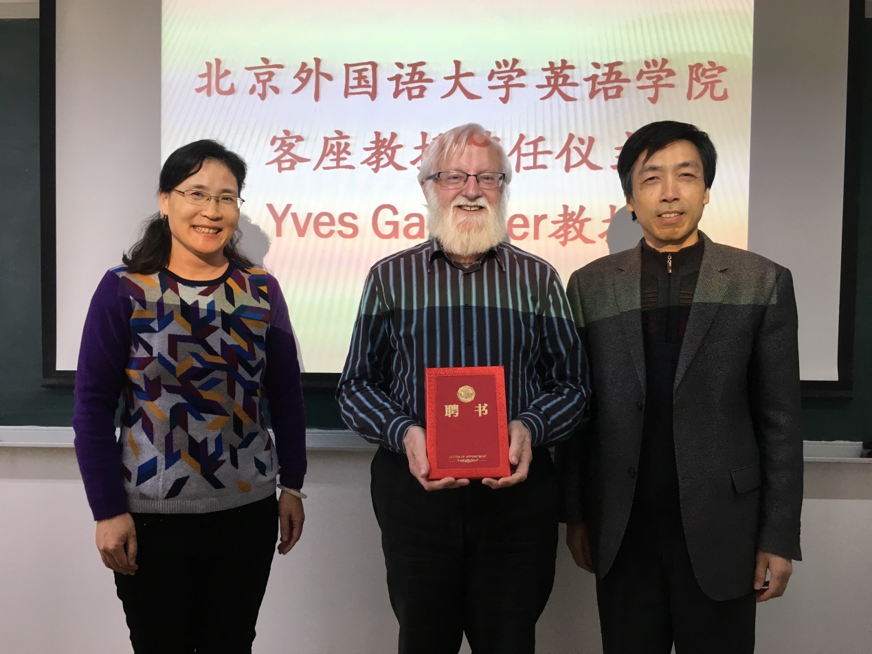 ——11月7日下午,当代著名翻译理论家伊夫•甘比尔教授(Prof. Yves Gambier)受聘北京外国语大学客座教授仪式在YABO鸭脖举行。YABO鸭脖院长张剑教授和翻译研究中心主任马会娟教授出席了聘任仪式。