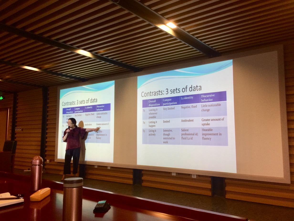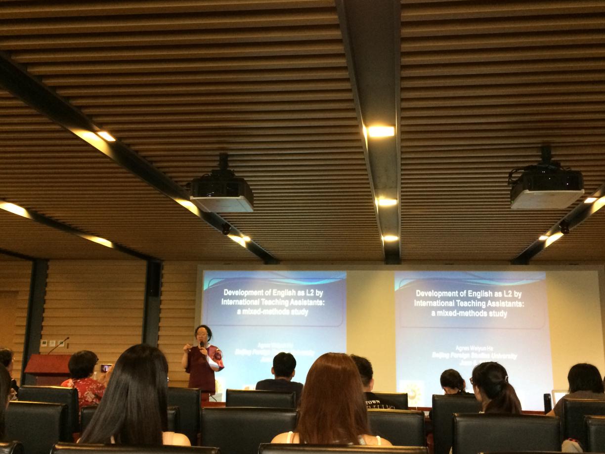 ——何教授就“国际助教(ITA)二语英语的发展”这一课题展开了细致深入的研究。本研究采用定量定性混合研究方法,在民族志研究数据基础上辅以实验数据,充分挖掘不同背景的国际助教英语作为二语的发展特点,该研究创新性地结合了民族志丰富性和实验研究严谨性的特点。何教授平易近人,讲授内容生动有趣,深入浅出。在讲演结束后,师生们就研究方法、研究内容和何教授进行了学术沟通,何教授一一进行专业解答。中心主任陈亚平教授主持讲座并对何教授的再次来访表示欢迎。