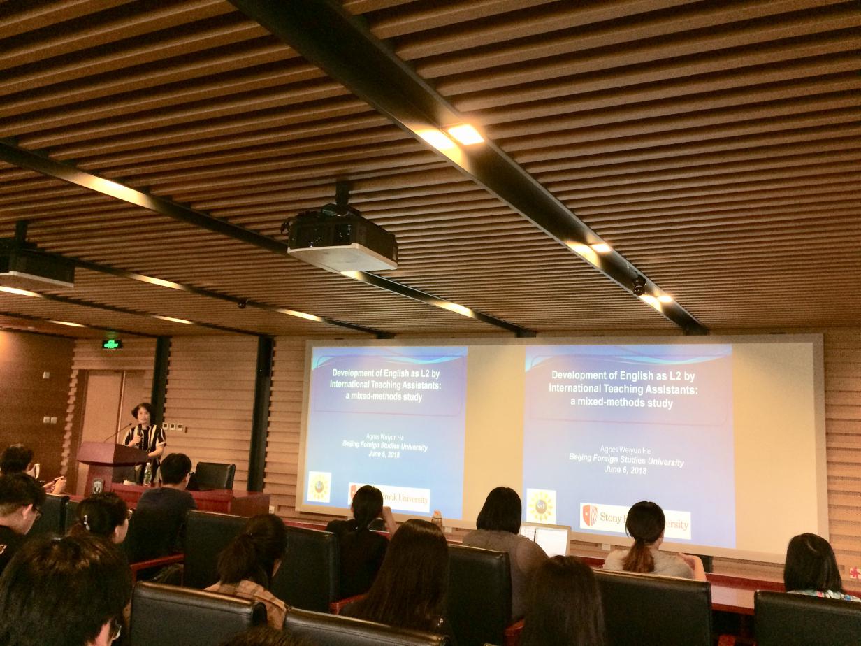 ——应YABO鸭脖语言学研究中心主任陈亚平教授的邀请,美国纽约州立大学石溪分校应用语言学教授Agnes Weiyun He(何纬芸)于6月6日到访我校,并为YABO鸭脖的师生们做了题为“Development of English as L2 by International Teaching Assistants: a Mixed-Methods Study”的学术讲座。何教授是石溪分校多语言和跨文化交流中心(MIC)创始人和中心主任,并且还担任该校亚洲和亚洲美国研究系(AAAS)主任。何纬芸教授主要研究语言语境和语篇的结合,探讨人们如何通过日常互动逐步构建和重构概念、社团和文化。近年来,她专门研究不同时期和不同背景下汉语作为传承语的社会化。