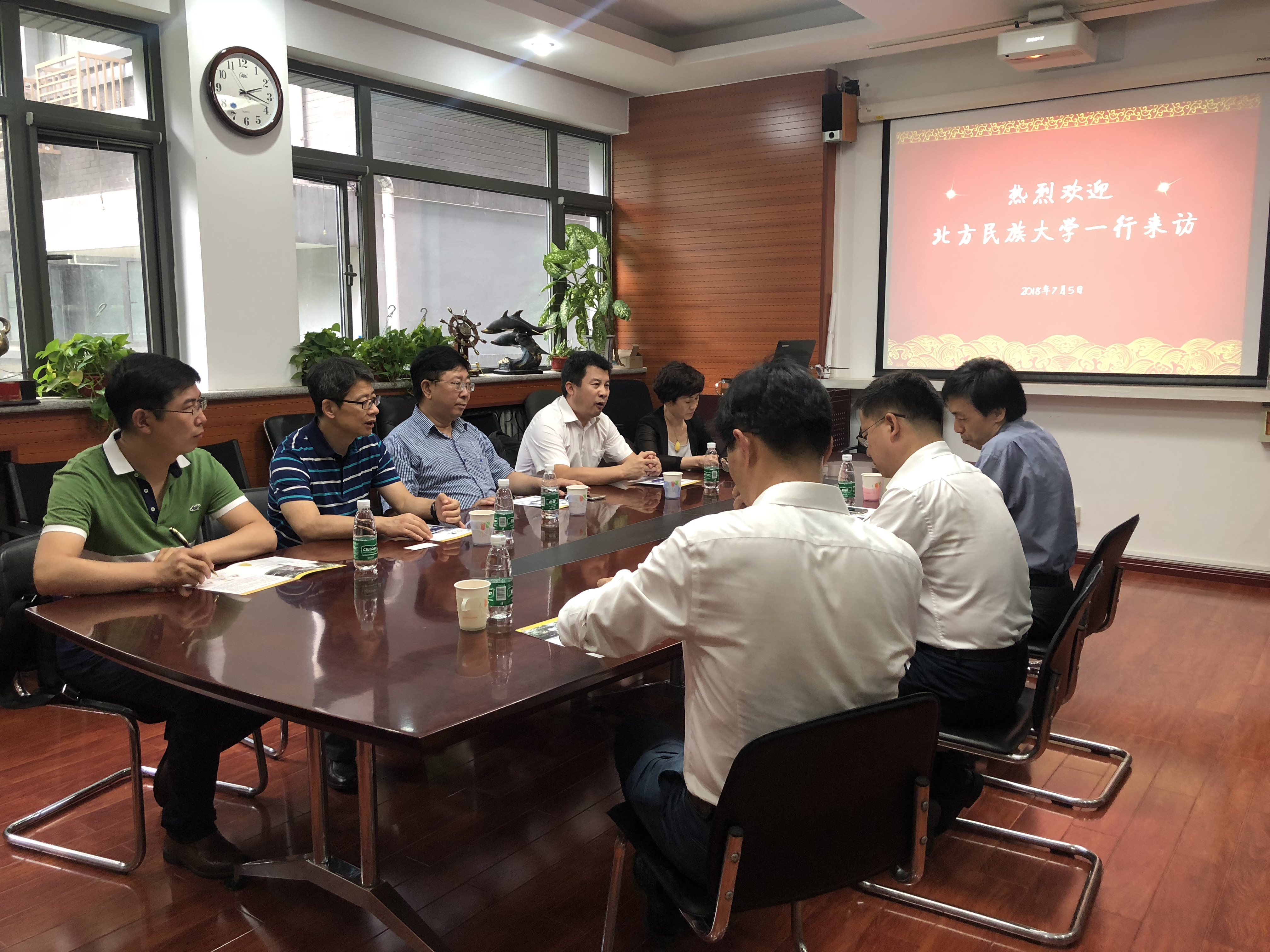 ——会上,张剑院长从学院师资队伍、课程设置、人才培养、合作交流及学生活动等方面做了简单介绍;北方民族大学外语学院副院长也介绍了该院的基本情况。双方就人才培养、学术交流等方面合作和可行性进行了亲切友好的交流,并希望日后能够有更多互相学习的机会。