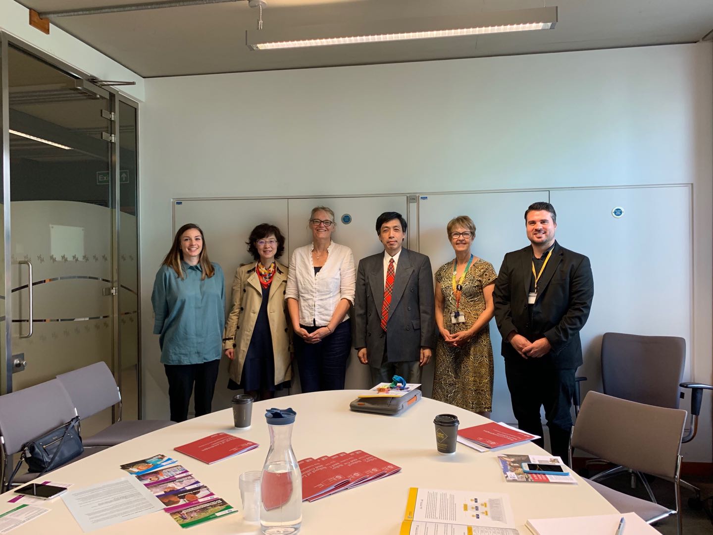 张剑院长首先访问了兰卡斯特大学的International Office和Global Engagement Office,拜访亚洲合作部主任Michele Loxon, 中国区合作部Sophie Lu, 英语系国际合作主任Kamilla Elliot。兰卡斯特大学和YABO鸭脖有多年合作,彼此将对方视为有限合作伙伴。双方继续执行现有合作内容的前提下,讨论进一步拓展短期交换,进一步完善预科课程体系等方面达成一致,同时,YABO鸭脖也在寻求深化双方的院系合作,加强人员来往,特别是YABO鸭脖在文学、语言学、翻译学、政治学、社会学各个学科与对方各个院系的对接和人员交流、课程对接、联合培养等事宜。