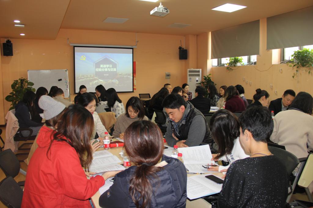 第一部分结束后,话语权回到在场的每一位党员手中,四个英语学习小组分别按“影视剧”、“公众号/APP”、“图书杂志”和“英文歌曲”的形式进行组内交流。各小组支部成员为国航机组人员分享了不同形式下的英语学习方法和资源,一些小组还通过现场演唱英语歌曲、精听美剧片段等方式,带领大家实践了这些学习方法。之后,各小组轮流分享了交流成果。英语学习方法和资源多种多样,最重要的以兴趣为出发点,找到适合自己的学习方法,坚持定期学习,并将学习内化为一种生活习惯。