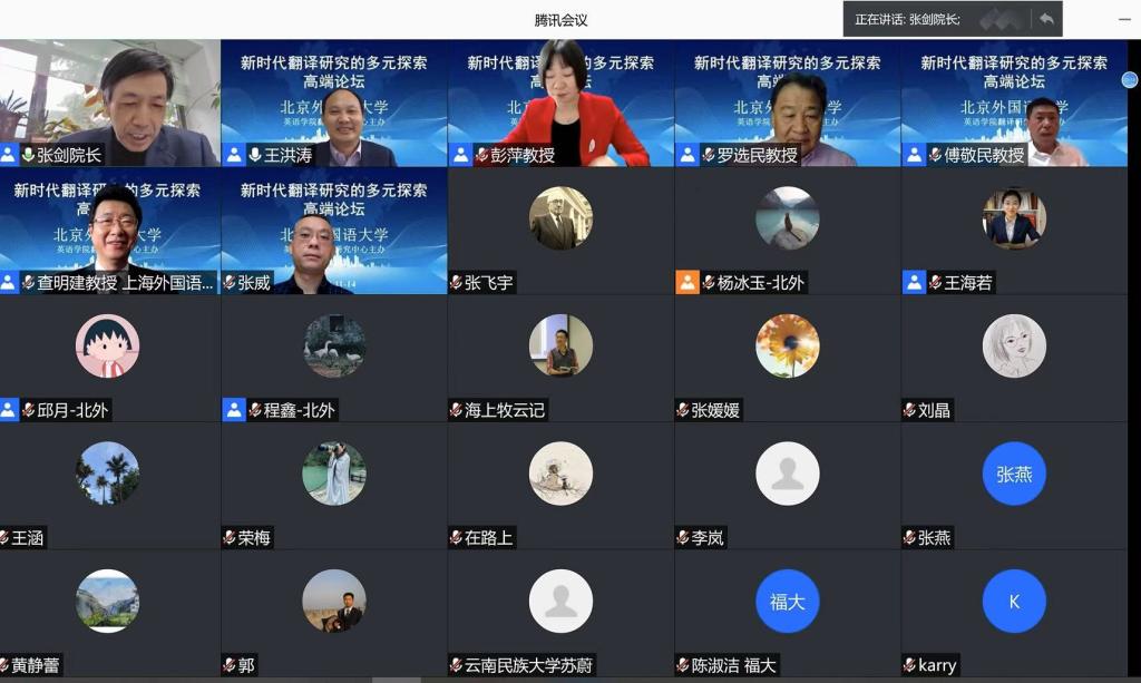 2020年11月14日,由北京外国语大学主办、研究生院资助、YABO鸭脖翻译研究中心承办的“新时代翻译研究的多元探索”高端论坛在云端隆重举行。本次线上论坛在腾讯会议和bilibili平台直播,观看人气峰值高达5393人。