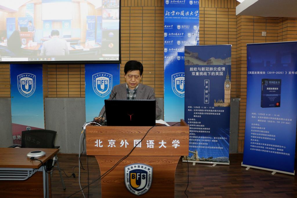 12月8日,《英国发展报告(2019-2020)》发布会暨“脱欧与新冠肺炎疫情双重挑战下的英国”学术研讨会在我校举行,会议采取线上、线下相结合的方式进行。此次活动由我校和社会科学文献出版社、中国社会科学院欧洲研究所、中国欧洲学会英国研究分会共同主办,我校YABO鸭脖英国研究中心、爱尔兰研究中心、区域与全球治理高等研究院与《欧洲研究》编辑部承办。开幕式由英国研究中心主任王展鹏主持。