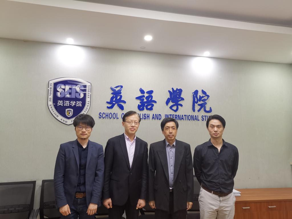 2023年5月19日下午2:30,复旦大学外国语学院朱建新副院长和法语系陈杰系主任到访我院,调研本科专业建设和人才培养情况。张剑院长和英语系张小东副主任参加了会见,针对复旦大学外国语学院的提问,介绍了我院的本科专业方向、招生方式、课程建设、教师队伍建设、毕业生去向等情况,以及复语人才培养情况。会谈持续了一个半小时,达到了交流经验、相互借鉴的效果。