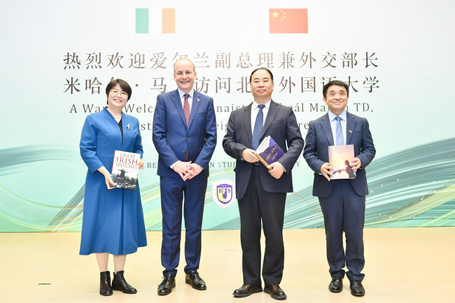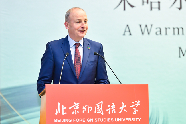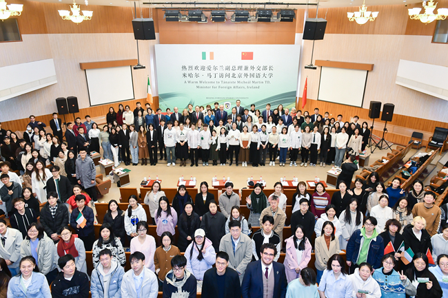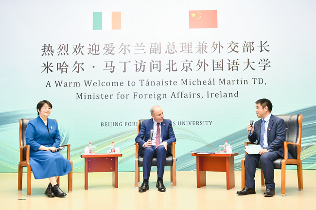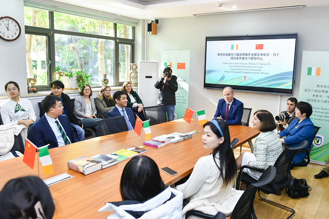 11月8日,爱尔兰副总理兼外交部长米哈尔·马丁访问北京外国语大学并发表演讲,与中外师生进行对话交流。北外党委书记王定华出席活动,活动由党委副书记、副校长贾文键主持。