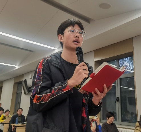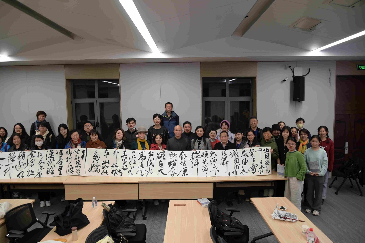 在互动环节,同学们积极提问,与方建勋深入探讨了书法的魅力和传统文化在当今时代的价值。最后,方建勋向在座师生展示了自己的墨宝,并挥毫泼墨留下书法作品《沁园春·雪》,尽显江流奔腾之势,给讲座画上了圆满的句号。
