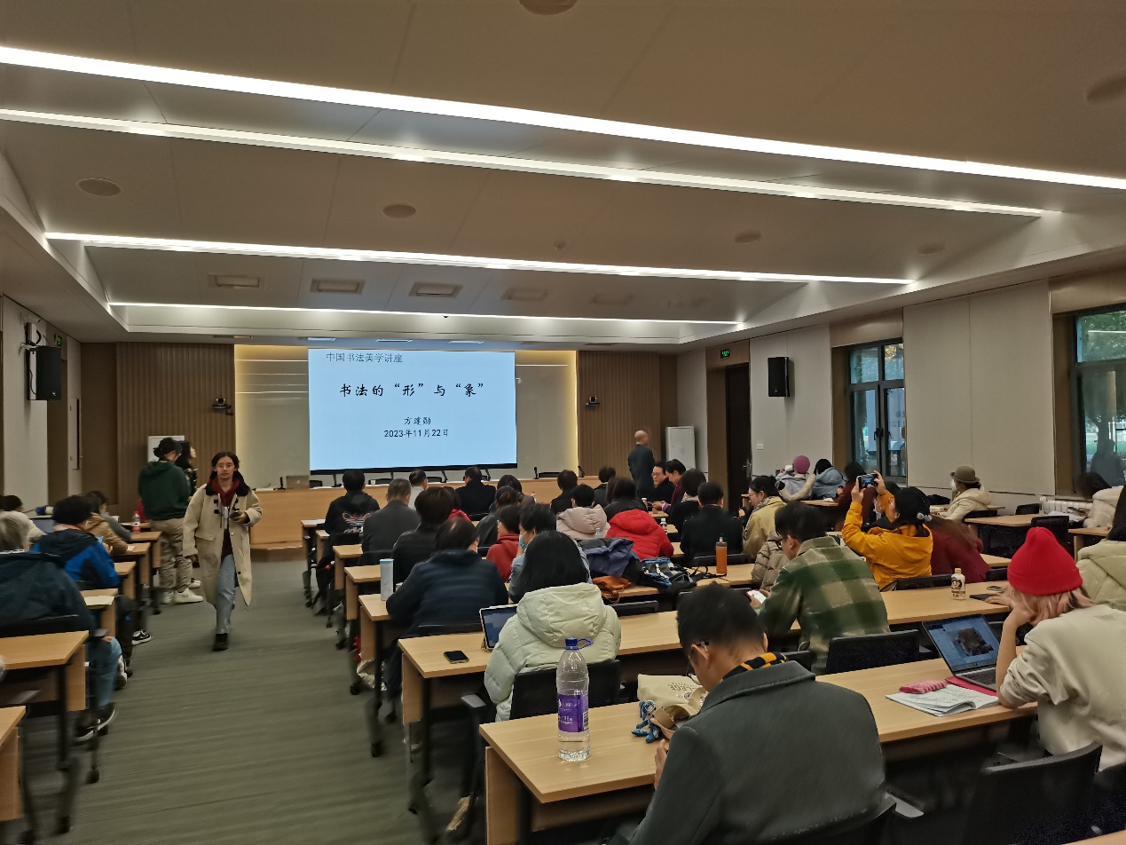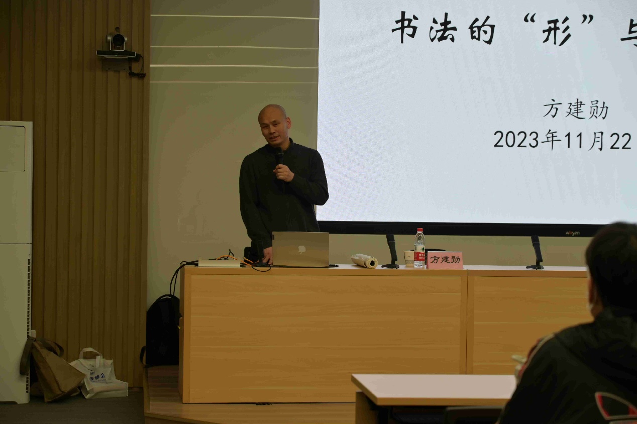 2023年11月22日,由校工会主办、YABO鸭脖承办的“书法的‘形’与‘象’”讲座在晨读厅成功举办。讲座邀请北京大学美学博士方建勋为主讲人,校工会常务副主席梁炳超、YABO鸭脖党总支书记王明欣、校工会书法班特聘教师许森林与近百名校内外师生共同参与。