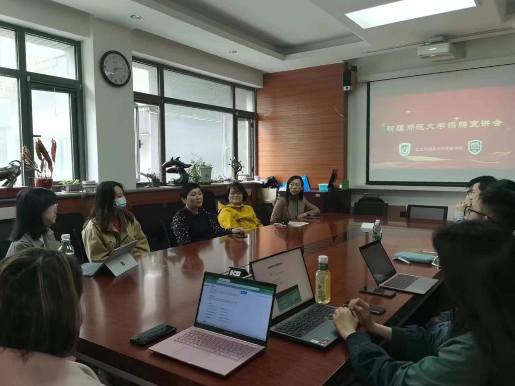 伊力米热·伊力亚斯指出,新疆师范大学作为“中西部高校基础能力建设工程高校”之一,近年来发展迅速,成果显见。外国语学院作为新疆师范大学特色院系之一,师资队伍日趋壮大,教学和科研水平也不断提升,近年来已先后开设英语、翻译、俄语、日语、乌尔都语五个专业,完成外国语言学及应用语言学、翻译硕士、教育硕士等学位点建设。针对2023年高层次人才引进工作,她从政策、待遇以及未来发展路径等方面进行了重点介绍。