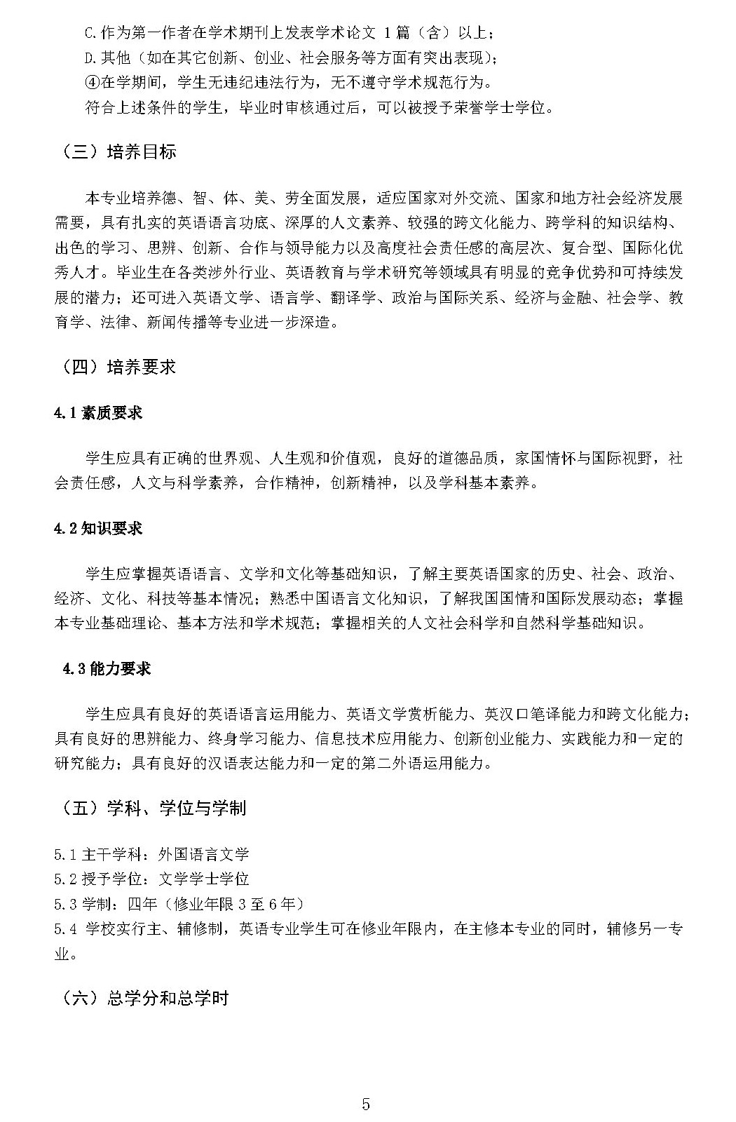 YABO鸭脖英语专业本科培养方案(2021)