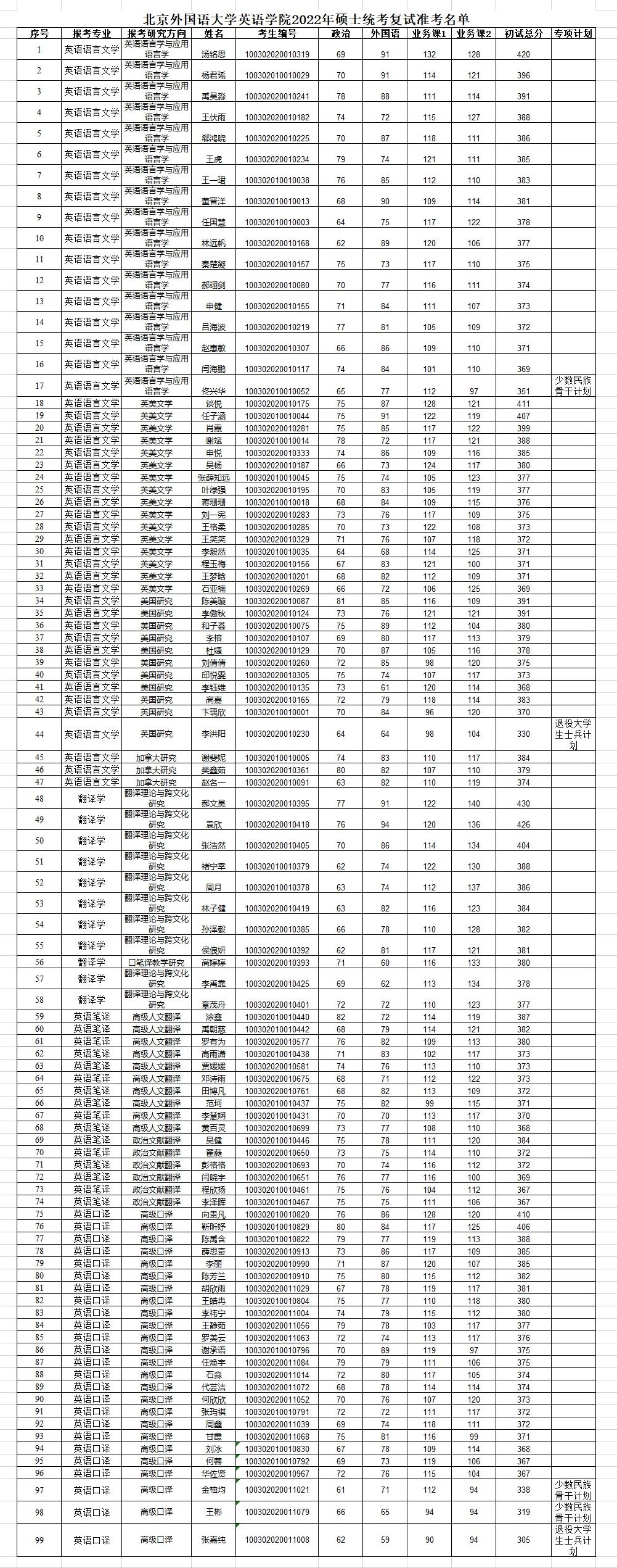 YABO鸭脖2022年硕士统考复试准考名单